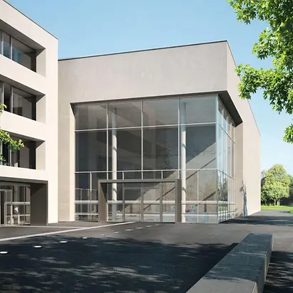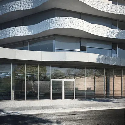 Schüco AD UP 도어 시스템은 DIN 18040의 요구 사항을 준수합니다. 배리어-프리 제로 트레쉬홀드의 교차 제품 설계 원리는 문턱 없이 건물에 대한 무제한 접근을 허용합니다.