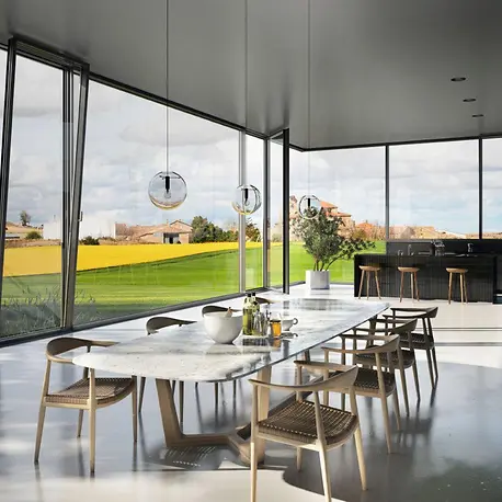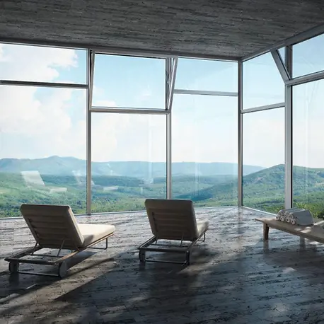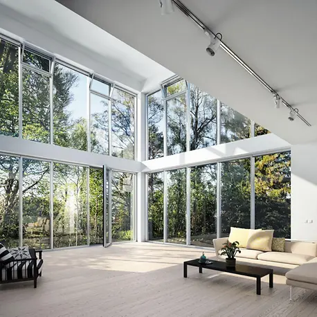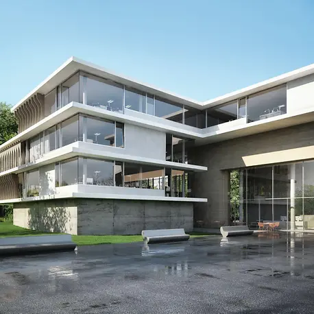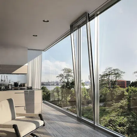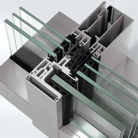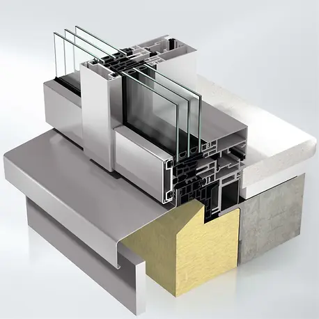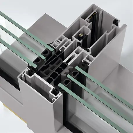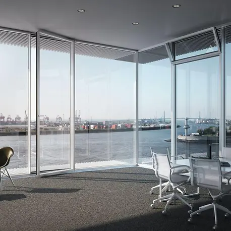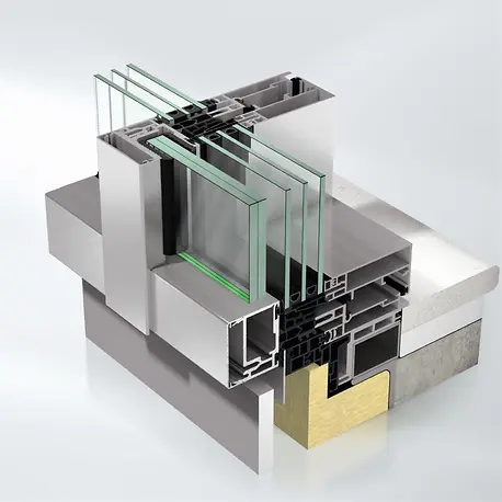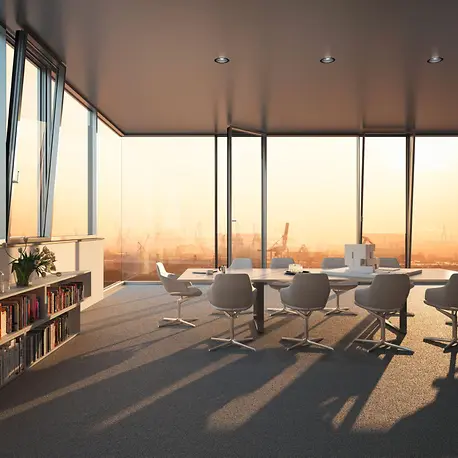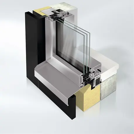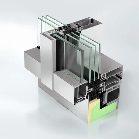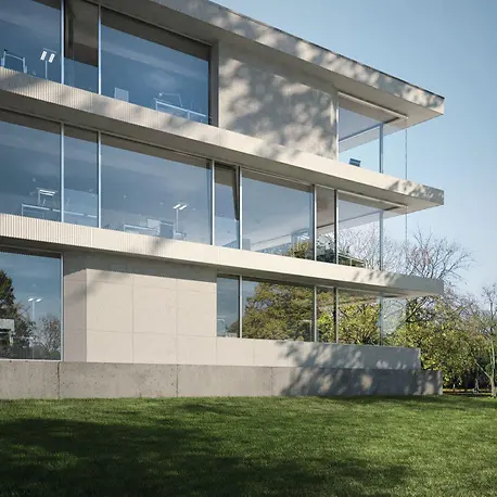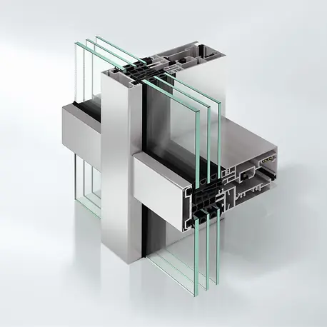 Schüco FWS 60 CV(Concealed Vent) 파사드 시스템은 슬림한 입면폭과 높은 기능성 및 우수한 단열성을 조화롭게 결합합니다. 입면폭이 60 mm에 불과하여 외부에서 개폐 유닛과 고정 필드를 구분할 수 없습니다. 창호 벤트는 매립형으로 닫힌 내부측면에서 슬림한 섀도우 갭으로만 그 존재를 인지할 수 있습니다.